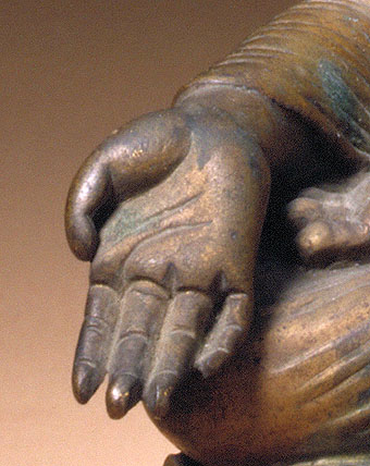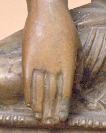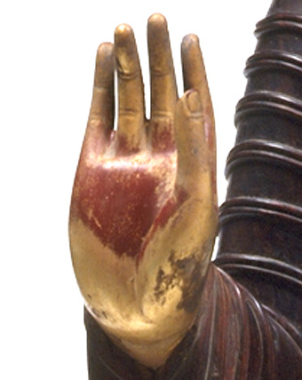 佛像的各种手势代表佛像的不同身份,表示佛教的各种教义,是具有印度特点的人体语言,表达的含义极为丰富。常见的有说法印、无畏印、与愿印、降魔印、禅定印5种,即“释迦五印”。手印形式可有多种变化,尤其是密教手印多达几百种,变化莫测,常见的有智拳印、期克印等。