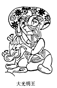 大光明,梵名 Maha^-prabha^sa,音译摩诃波罗婆修。释尊于因位修菩萨行时之王名。据贤愚经卷三大光明王始发道心缘品载,过去无量无边阿僧只劫,阎浮提有大王,名大光明,聪明勇慧,王相具足。时有一边国之王,献二象子,王大悦,延请象师散阇调教,教成,王乘之出城,象见群象在莲华池,而奔逐之入林,王伤而怒,象师乃请王观其调象之法,遂作七热铁丸,令象吞之,象焦烂而死。王见之,大为惊悔,召问象师,象师谓,己唯能调其身,而未能调其心,唯佛能调身调心。王闻言,即便发心,誓愿作佛,精勤历劫,果获其报。尔时之王即释尊,象师即舍利弗,象即难陀。此即大光明王之本生,此说盛行于西域龟兹。于今龟兹(Kizil)之 Schlucht-ho%hle 窟之壁画中,有一幅大光明王之画,王跨乘象,两手捉举树枝,此画恐系根据上记之本生故事而来者。另于大方便佛报恩经卷五慈品,载有故事不同之大光明王本生,其内容与月光王本生略同。(贤愚经卷十大光明始发无上心品、大庄严论经卷九、经律异相卷二十五、卷二十六)p774 上一篇 下一篇