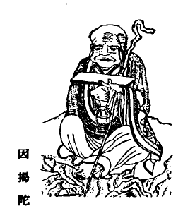 梵名 An%gada。又作因羯陀、因竭陀。为十六大阿罗汉之第十三。此圣者与其眷属一千三百阿罗汉住于广胁山中,护持正法,饶益有情。唐代禅月大师贯休画其像为杖藜倚肩,左手托经,垂头注视,右手掐珠。苏东坡赞云“捧经持珠,杖则倚肩,植杖而起,经珠乃闲。不行不立,不坐不卧,问师此时,经杖何在?”(大阿罗汉难提蜜多罗所说法住记、 罗汉图赞集、E. Pander:Das Pantheon des Tschangtscha Hutuktu)p2300