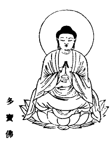 多宝,梵名 Prabhu^taratna,音译袍休罗兰。又作宝胜佛、大宝佛、多宝如来。据法华经卷四见宝塔品之说,多宝佛系法华经之赞叹者,为东方宝净世界之教主。亦为五如来之一。此佛入灭后,以本愿力成全身舍利,每当诸佛宣说法华经时,必从地踊出,现于诸佛之前,以为法华经之真实义作证明。又多宝佛所踊出之七宝塔,系由无数宝珠严饰之,此乃表示一切诸佛国土同一宝性之意。另多宝佛与释迦牟尼佛并坐于七宝塔中,则显示诸佛皆为成就度化众生之大事,而示现于世间。我国自古以来,法华信仰颇为盛行,随着法华经之说兴盛,故亦流行造立多宝塔,于大同云冈石窟中,即有不少多宝塔之遗迹。 关于其形像,据法华曼荼罗威仪形色法经之偈载,头有乌瑟绀发冠,眉间放索毫光,普照一切,身呈黄金色,结定慧智拳印,身披袈裟衣,跏趺安坐于大莲华上。诸经每以多宝佛为金刚界之大日如来,而以释迦佛为胎藏界之大日如来。(大智度论卷七、法华文句卷八下、法华义疏卷九、慧琳音义卷二十八)p2337 上一篇 下一篇