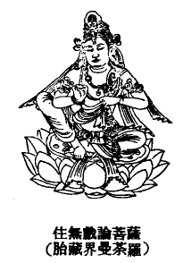 住无戏论,梵名 Aprapan~ce-viha^ri,音译为阿钵罗波制尾贺哩,即住无戏论者之义。为密教位于现图胎藏界曼荼罗金刚手院中下端之尊。大日经秘密漫荼罗品中之“住无戏论”,及大日经疏中,阿阇梨所传曼荼罗之“无戏论金刚”,乃指此尊。其形像,全身呈肉色,左手持独股杵,置于胸前,右手置于胸侧,微舒小指,握如莲花拳,竖右膝,坐于赤莲花上。密号无异语金刚,三昧耶形为一股杵,种子为[fan(hu^m!)](hu^m!),采用持地印及一切持金刚之真言。(大日经住心品)p2604