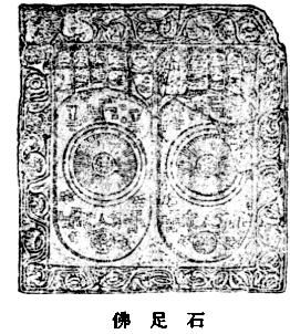 又作佛足迹、佛脚石。即雕有佛陀足跖,以表千辐轮等妙相之石。见佛之足跖而参拜,如同参拜生身之佛,可灭除无量之罪障。印度、中国、日本,古来即有佛足石,崇敬佛足石之风亦甚普遍。初期印度之佛教,不敢直接模拟佛像,故多以法轮、菩提树、塔、高座及佛足石,象征佛陀或其所在之标帜,其后传来我国、日本,佛足石遂成为礼拜对象。 据大唐西域记卷八摩揭陀国华氏城条记载,佛陀入灭前,于摩揭陀国遗留足迹,其长一尺八寸,宽六寸,各有轮相,十指皆带花纹。又现今印度巴赫特(梵 Bharhu^t)塔门浮雕之三道宝阶图,刻有佛足迹,其中印一法轮;阿摩罗婆提(梵 Ama-ra^vati^)出土之遗品中,于足中央刻轮形,又另有轮、卍字、三宝章等之图样。其中,前者属最古制,后者则近似现今传于我国及日本者,图示于后。在我国,唐使王玄策曾图写华氏城之佛足石归国,流行于各地。此外亦有玄奘请来之佛足图。(别译杂阿含经卷十三、分别功德论卷二、法苑珠林卷十四、卷二十九、洛阳伽蓝记卷五、大唐西域记卷二、卷三)( 上一篇 下一篇