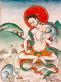 在维嘎苏拉市附近有一座尸陀林,他就住在尸陀林附近。在晚上野狼常常成群结队的在尸陀林中嚎叫,他感到非常的害怕。结果不论白天或夜晚他都对狼非常的恐惧。有一天,有一位比丘来到他身边向他乞食,他跪在比丘的脚下向其顶礼后,很诚恳的向比丘说了亲切的话,并且以食物供养了比丘。比丘就开示告诉他布施的利益。 他告诉比丘:“布施波罗密的贤善法门利益是非常大的,但是我请求您能教导我一个不会害怕的法门。”比丘就告诉他:“你是畏惧轮回的痛苦呢?对于其它的事物有什么好害怕的呢?”他回答:“对于轮回痛苦的恐惧是世间共法,是所有人都有的。但是我很害怕在尸陀林附近的健壮的野狼的嚎叫声,不论是白天晚上,我日以继夜的恐惧着。如果您有能消除恐惧的法门,请您教导我。”比丘告诉他:“我有能够去除恐惧的咒和教授,但是必须先传给你灌顶。” 他就向上师献供养了许多金银来请求灌顶,然后教导他去除恐惧的法门如下:“你不害怕敌人,而害怕野狼的嚎叫声。你就不分日夜的来观修世界上的声音都是狼嚎声,同时你在尸陀林中建造一小茅屋来居住。”他就依照上师的教授来禅修,对于所有声音以声音与空性无别的体悟中,远离了对狼嚎的恐惧,恐惧自然消失,心中生起了平等无畏大乐。他就这样禅修了九年,身体的染污都清净了,得到了大手印的证悟。 之后,大师肩上披了一块狼皮,成了狼人,瑜伽士夏力巴的大名传遍各地。大师对弟子们开示了许多显现与空性无别的教授。最后即身回到卡雀空行净土。 这是咕噜夏力巴大师的故事。 ![]() 上一篇 下一篇