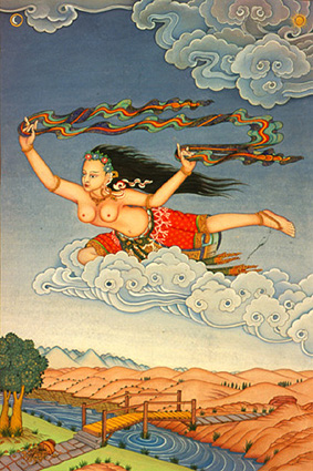 “她是阿卡哲地区的一户大富人家的女儿,在她十三岁时,嫁给了一个门户相当者。有一次,女儿回到了娘家居住时,古古力巴大师来到这里乞食。女儿告诉他:“您的身体庄严明亮,却以托钵乞食为生,穿着缀补缝制的福田衣,为什么您不娶一个身份相当的妻子来好好过生活呢?” 瑜伽士告诉她: “吾对轮回深怀恐惧故, 努力追求解脱之大乐。 如果不能善用人身宝, 来生能否再得殊难料。 暇满人身所依胜珍宝, 陷入世俗不净家累中。 欲望需求种种痛苦生, 了悟此故吾舍离妻子。” 富家女听了瑜伽士的开示,心中生出了信心,就供养他美食,并且向瑜伽士请求开示解脱法要。瑜伽士告诉她自己住在尸陀林中,如果她想得到佛法,可以到尸陀林中找他。 富家女心中牢记着瑜伽士的开示,对其它事情毫不关心,晚上即来到尸陀林中。瑜伽士见到女孩的心性已成熟,就给予她上乐金刚的灌顶,并且开示了生起圆满二次第的双运禅修。 女孩就留在尸陀林中禅修了七天,才回去娘家。父母非常生气,狠狠的把她打骂了一顿。女孩告诉他们:“三界之中没有一个众生不曾作过自己的父母,尊贵的种姓也无法避免轮回的痛苦。我决心仰赖上师的法教来修持解脱道,绝不会改变。”他们听完后心中都非常的惊讶,但是也不能说什么。 因此富家女就依照上师的教授来修持,完全放弃了世俗的工作生活。这样经过了一年,她的先生来到这里接她回到夫婿家中,就像以前一样的来从事各种家务工作。不论在言语或是行为上,家庭都非常的和谐。先后生下一子一女,和父母长的一模一样,众人都认为真正是继承了家族的血统。 有一天女主人在发愿时,又遇见了上师,而这其中已经过了十二年。 一天女主人去取水时,在回家途中,脚踢到了一棵树,结果把水瓶打破了,她就站在那里动也不动,就这样过了半天,仍未回家。 家人来寻找她时,看到她瞪视着破碎的陶器。和她说话时,如同没听见一般,众人都认为她被邪灵附身了。直到太阳已西落,她才从口中说出下列的偈语: “无始轮回之众生, 身之陶器毁坏时, 回到家中有何用? 我有陶罐今破碎。 轮回宅中今不回, 吾将前往大乐土。 奇哉上师难思议, 欲得安乐应依止。” 她说完后,就跃身至空中,在二十一天中,对阿卡哲地区的居民开示佛法,之后即回往法界空行净土。 这是咕噜玛尼巴札大师的故事。 ![]() 上一篇 下一篇
