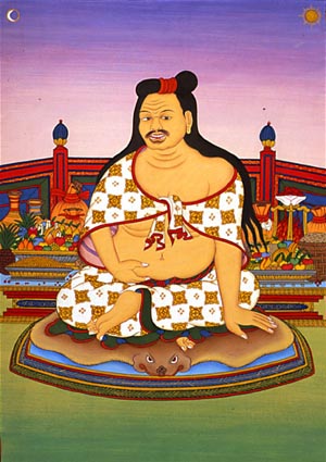 在阿巴拉城市地区,是由国王月狮子统治着。这里住着一位平民,他的肚子非常巨大,只要看到什么他就把它吃掉。 有一次他什么吃的都没找到,就坐在一个地方为着空肚子烦恼时,沙拉哈巴大师经过这里,问他在作什么?他回答:“我的肚子非常的火热,很容易饿。不论我吃什么,总觉得吃不饱。特别今天我什么都没有吃,所以非常的痛苦。” 大师告诉他:“你连今天的饥饿都受不了,未来如果出生在饿鬼道中要怎么办呢?”沙拉哈巴大师就以神通力令他看见饿鬼道的情况。 他又问:“为什么会生于饿鬼道中呢?”大师告诉他之后,他就向大师请求能够脱离此痛苦的方法。大师首先给予他灌顶,之后开示他吃食的禅修法门: “肚子广大似虚空, 胃中生出劫末火。 一切显现如饮食, 吃尽无余依此观。” 他依照上师所教导的来努力修持,结果连日月都非常恐惧,怕被他吃掉,躲藏到须弥山的后面。人们都异口同声的抱怨着光明的消失。空行母们就来到沙拉哈巴大师处,请求他来协助。大师就来告诉他:“现在你已经把一切都吃掉了,开始观修一切都变成没有。” 他继续依照上师所教来修持,了悟到明光与空性的双运,得到了证悟。太阳和月亮再度出现,所有人都很高兴。他经过了十五年的修持,得到了证悟。 大师自己叙述了证悟的过程,在六百年中利益了无数众生,最后带领了弟子千人回到卡雀空行净土。 这是咕噜沙瓦巴噶大师的故事。 ![]() 上一篇 下一篇