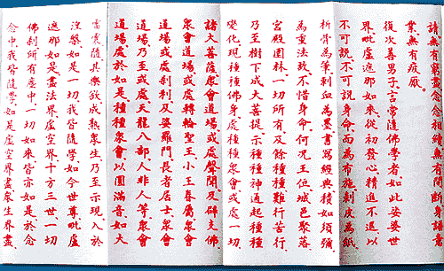 ![]() 释本焕,祖籍湖北新州,出生于清光绪三十三年(公元1907年),俗姓张,学名志山,7岁入私塾,6年后到本地一家杂货店当学徒。22岁在新州报恩寺出家,1930年到武昌宝通寺受戒,同年6月去江苏扬州高旻寺拜来果法师为师,在此修行7年。1937年2月,他不辞辛劳,发大愿朝拜五台山,后住碧山寺,1939年9月荣任该寺第三代方丈,在此苦修10年期间,用指血抄写了一部《普贤行愿品》,共19卷,计20万字。1947年2月他又先后朝拜了北京弥勒院、天津居士林、上海普济寺。1948年11月离开五台山到广东南华寺诚接虚云大和尚的法。1949年元月就任南华寺方丈。1958年因反右蒙冤到坪石农场参加劳动,1980年广东省人民政府宣布予以改正。同年4月,应仁化县人民政府和佛教界邀请,就任丹霞山别传寺住持。广东省佛教协会于1987年元月接请他上任广州光孝寺住持,1992年兼任深圳弘法寺方丈至今。 本焕法师1994年上任黄梅四祖寺方丈以来,不顾年事已高,路途艰辛,多次到黄梅,会同县政府和主管部门的领导视察四祖寺,亲临实地进行设计规划,资助巨款,使祖庭得以重辉。本焕法师现任中国佛教协会常务理事,中国佛教协会咨议委员会副主席,广东省佛教协会副会长,广州市佛教协会会长,韶关市佛教协会名誉会长,还是广东省政协委员。 ![]() 本焕老和尚以血书写成的《大方广佛华严经普贤行愿品》(部分) (根据网上资料编辑) 上一篇 下一篇