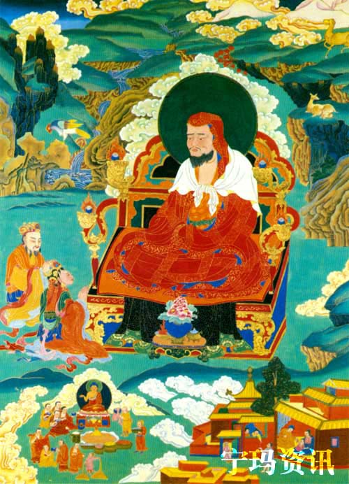 ![]() 在仙人山上, 居住着尊者阿氏多。 他周围伴随着一百个阿罗汉, 尊者双手作掸定手印, 向尊者致敬! 做禅定手印时,将右手手掌向上置于左手之上,两手拇指轻轻碰触。禅定手印的含义如下所述: 一位瞻仰、顶礼、崇拜阿氏多尊者禅定法印的信徒,可以得到阿氏多尊者的佑护,并可以获得很多修习成就。其中包括观修佛法日趋精进完美;获得无限的福泽和广泛的心智修养;使心神专注于各种禅静。 此外,据说如果信徒观想禅定于印尊祈供奉阿氏多尊者,他将对完美佛法的忠诚与日俱增,并坚定修习佛法的决心,悉心修习佛法。 无论信徒在什么地方受到伤害或者遇到任何邪魔,由于受到禅定手印的加持和佑护,这些外力和妖魔都不能动他们一根毫毛,确保他们平安无恙;可以戒止魔、人以及非人的所做恶行,最终导引积累善业功德。 阿氏多尊者生平 阿氏多尊者出生在当时六大城市之一的室罗伐悉底城,父亲来巴热赛是一富翁,他与同种姓内的一妇女结婚。妻子怀孕后给他生下一个漂亮的男孩。男孩身上带有很多吉祥善德的标帜,出生时有诸多瑞兆同时出现。孩子出生那天,由于婴孩福运的支使,出现了一头满身珍宝的大象。所以就给孩子起名叫朗保巾,意思是“具有象的人”。孩子的出生也了却了来巴热赛的一桩心愿。随着时间的流逝,朗保中也长大成人。 国王波斯匿王和王后有一个漂亮的女儿,在这位公主身上有很多类似于僧衣法衣的标帜。因为这个原因,公主的名字就叫“却郭巾”,意思是“具有法衣的人”。说来也巧,一天公主在丛林里散步,正好碰见朗保巾也在丛林中。二目对视,双方都被对方的美貌吸引住了。那天夜晚,俩人回家之后,仍然不能控制对对方的思念,双双坠入爱河。 不久,朗保巾的父亲来巴热赛知道了这件事,就去问他的儿子,朗保中把他们相爱的详细情况都告诉了父亲,并恳请父亲想个办法,以便能让他和却郭巾公主成婚。父亲听了他的祈请后,回答说: “我们怎敢向公主求婚呢?如果你们俩人前生的姻缘已定,那么,即使你不做任何努力,姻缘也会得到天成,因此,不必去做无谓的努力。” 朗保巾虽然明白父亲所说的这番话,但他对公主的爱情却与日俱增。 一天,朗保巾应国王波斯匿王的召请,带上从他的“宝象”身上取下的两支珍贵的象牙赴请。他来到王宫,将两支象牙献给波斯匿王,国王看见这珍贵稀有的礼物,非常高兴。他向朗保巾表达了谢意,并赞扬了这位年轻人。国王问朗保巾叫什么名字,最喜欢得到什么东西作报偿,朗保巾说什么也不要。于是,国王对这个青年更是心生喜爱,更加赏识。 经过一段时间,朗保巾已知道自己得到了国王的钟爱。他又将世间稀有,堪与任何珍宝媲美的象牙作为礼物献给了国王。 此后的一天,国王对朗保中说: “我不能够总是从你这儿拿价同金子一样珍贵的礼物,它们不能使我感到快乐。给我带来快乐的是你英俊的容貌,你真是自然为国王生就的美饰。如此的青年是国王我的亲信,对你来说,我愿最大限度地满足你的愿望。即使是你要我的财宝,我也愿意交给你,而且毫不反悔。” 朗保中行双手合掌的尊敬礼节,然后说: “别的东西我什么也不想要,我要的不是财宝,也不是权势。我只有一个请求,如果不惹您生气的话,我想请求你把公主却郭巾许配与我为妻。” 听到朗保中说了求婚的话,波斯匿王非常为难。 国王心情不快地沉默了一会,回答说: “明天早晨我再告诉你吧。”当朗保巾回家之后,国王召见宰相告诉他自己进退两难的处境将如何应付这次求婚,如果不拒绝的活,就只得同意这门婚事了。国王对宰相透露说: “我是不想把女儿嫁给朗保巾,我女儿是一位公主,朗保巾虽说英俊,又有很多令人称羡的品质,但他毕竟出身平民。不过,如果青年人的希望破灭之后,也不能断送我与他之间的友谊。我真不能想象我明天早晨如何见他。” 国王一面说,一面露出为难的神色。宰相教给他一个方法,叫国王明天早晨按宰相的安排进行。 第二天早晨,当朗保巾来的时候,国王告诉他如果朗保巾能够骑着「宝象”到宫中来的话,就把公主嫁给他。朗保巾听完就赶回家去,不一会儿他骑着「宝象”和他的手下人到王宫来迎娶新娘。国王看见朗保巾最好的“宝象”前来,真是吃惊不小。他开始信服这个幸运的年轻人具有高尚的品德。国王一高兴,也想自己骑上“宝象”试一试,但当国王去骑乘时,“宝象”就远远地跑开了,甚至碰也不能碰一下,但朗保巾却可以重新骑上向前走去,国王非常惊奇,于是他毫不踌躇地把女儿嫁给了朗保中。 朗保巾娶到了一位美丽的公主。他和妻子一起返回家中,全家和睦地生活在一起。日子越过越昌盛,实现了以前所有的宿愿,他们在任何方面都没有过分的欲求,也不悉心去追求财物。从此,朗保中就以阿氏多的美名而为人所知。阿氏多的意思就是“不能击败的人”。 此后的一天,波斯匿王由阿氏多和公主却郭巾以及国王的大臣等,陪同来到祗陀林向释迎牟尼效忠。他们一行人在释迦牟尼佛面前行跪拜礼。国王问释迦牟尼佛: “由于阿氏多所修的善业,他已经获得了如此的智慧和广博的成就。对他来说,最大的福运是拥有最好的‘宝象’,请问是修什么善业得此报偿呢,又根据前世的什么善业使我女儿嫁给阿氏多为妻呢?” 释迦牟尼佛回答说: “现在世间生活的人其所有幸福都是上世业力的结果,当毗婆尸