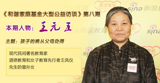 ★说明:针对中国家庭亲子交流现状,和谐家庭基金和新浪教育联合推出“大型公益访谈”,话题将涉及亲子伦理、早教、亲子沟通、家长角色解析等多种内容。第八期做客嘉宾为王元五老师。