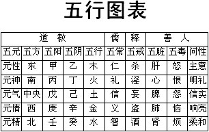 此表以五脏为中心,五常为物(阳),五毒为阴,用五常之德,养五脏中和之气,去五毒之病根。问性,拨阴取阳,可以疗病。持五戒养五元,可以成道。